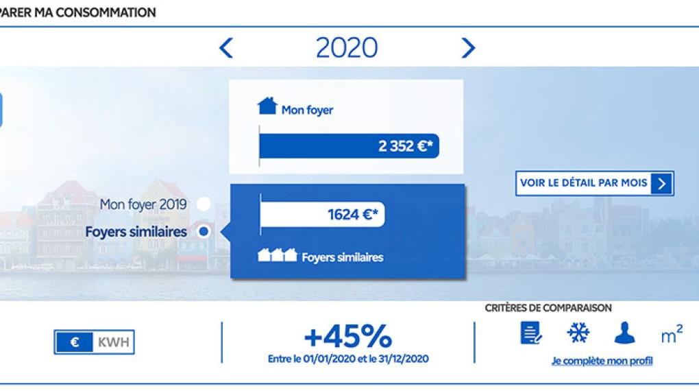 Vous avez changé votre façon de consommer ? Vérifiez si vos résolutions portent leurs fruits en comparant vos consommations à celles de l’année dernière et à celles des foyers similaires au vôtre(1).